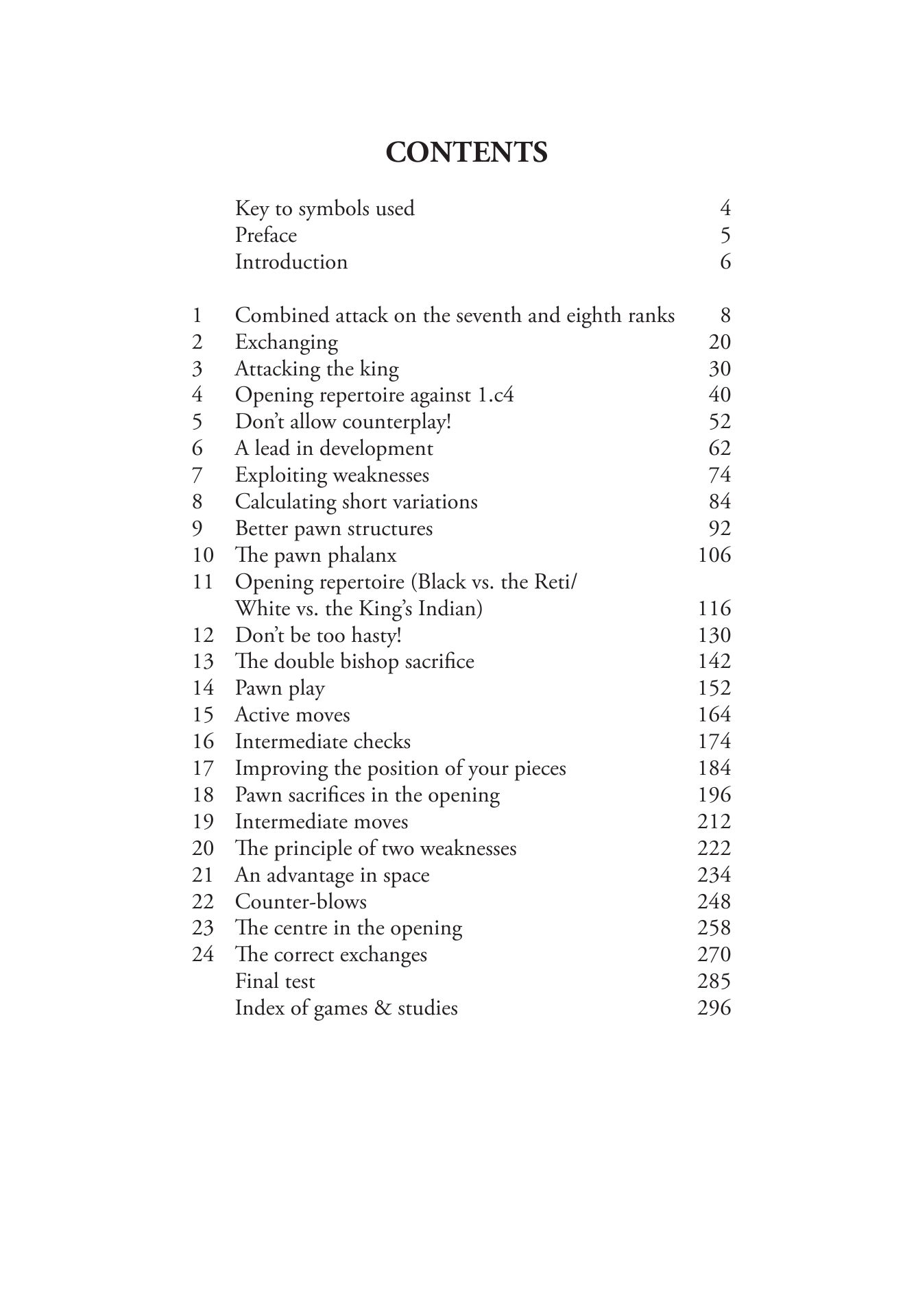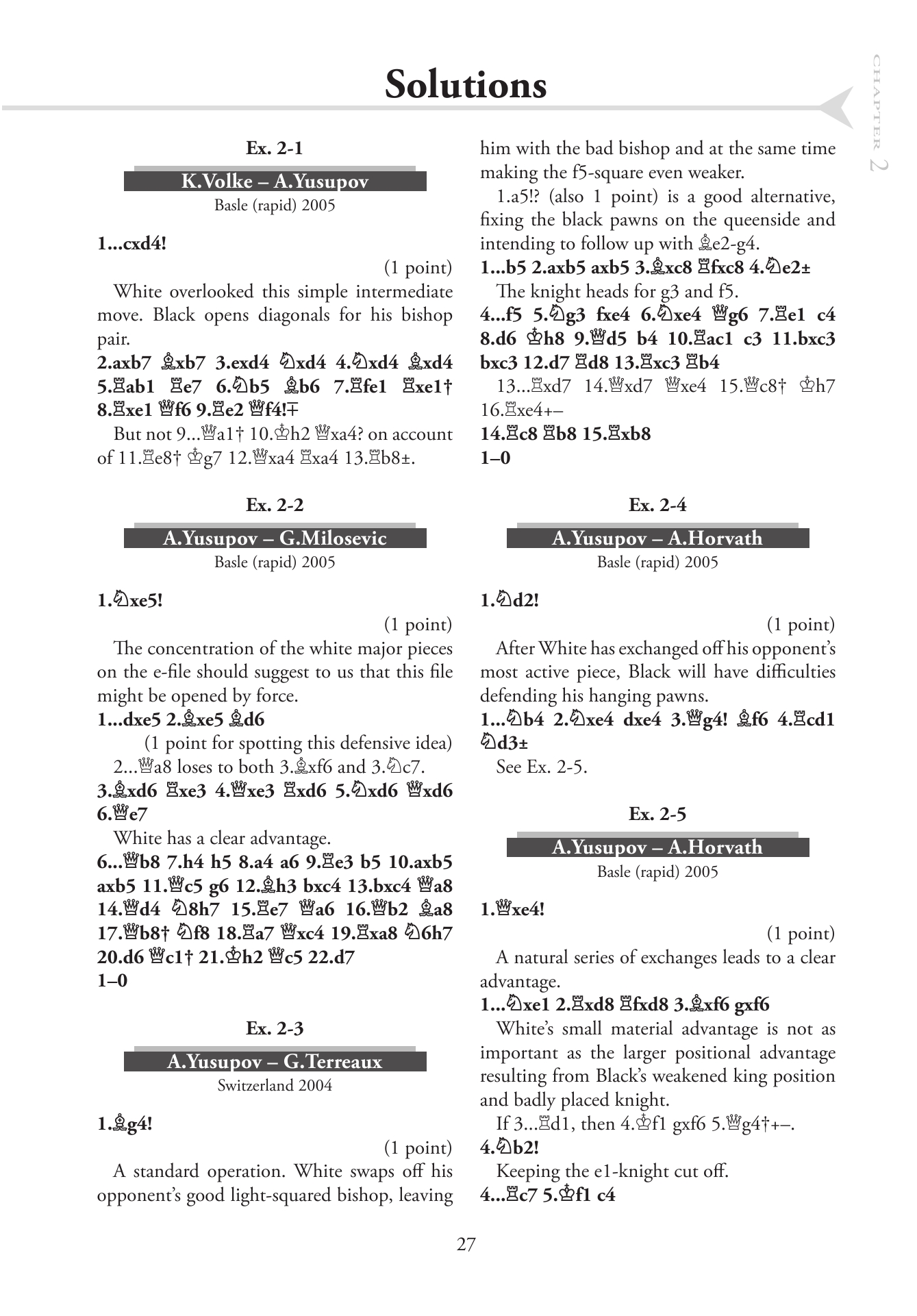 "As mentioned in previous reviews of this series, these books have three principle audiences. They will be useful for players wishing to increase their strength to improve their rating, for coaches looking for a structured curriculum and/or useful training material and for those who wish to increase their understanding of the game that, because of various circumstances, may no longer be able to play regularly. While Yusupov modestly cautions in his introduction that this series is not a substitute for a trainer, there can be no question that the motivated student working alone can glean much knowledge."