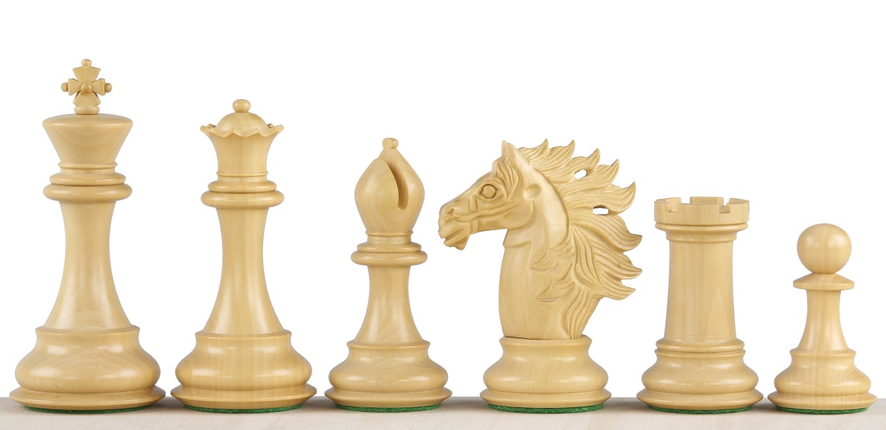 Każda figura została mistrzowsko wyrzeźbiona z czerwonego drewna Redwood, nadając im elegancki, ciepły odcień. O wysokości 4 cali (około 10 centymetrów), te figury stanowią imponujące centrum uwagi na szachownicy.