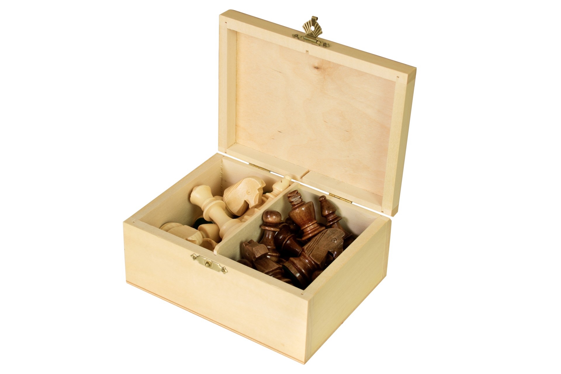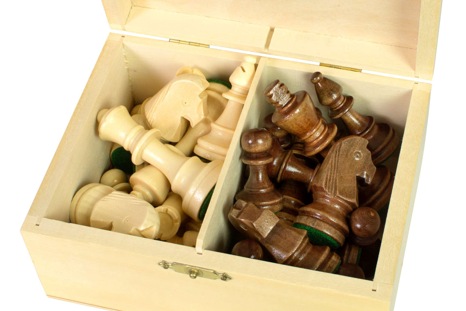 Figury są przechowywane w jasnym kuferku, co nie tylko chroni je przed uszkodzeniami, ale także dodaje do elegancji całemu zestawowi. Kuferek został wykonany z buku i brzozy, jest praktyczny do przechowywania i transportu figurek.