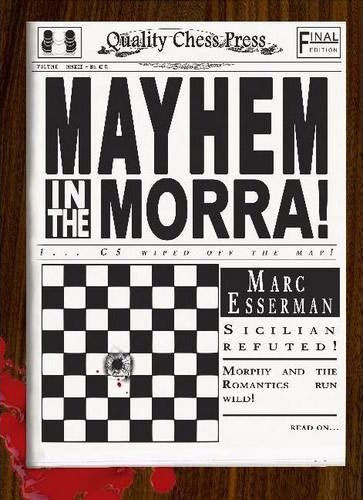 "IM Marc Esserman's brilliant Mayhem in the Morra arrived in the mail this weekend and has not been out of my hands very much since. Not only is it chock full of interesting ideas and original games in the Smith-Morra Gambit (1.e4 c5 2.d4 cxd4 3.c3), but it is also a fun book to read! In fact, I find it hard to remember the last opening book that was as entertaining to read as Mayhem in the Morra, which has an inspired and amusing style -- overflowing with personal anecdotes, quotes from James Bond and Austin Powers films, and incitements to romantic violence at the chessboard."
