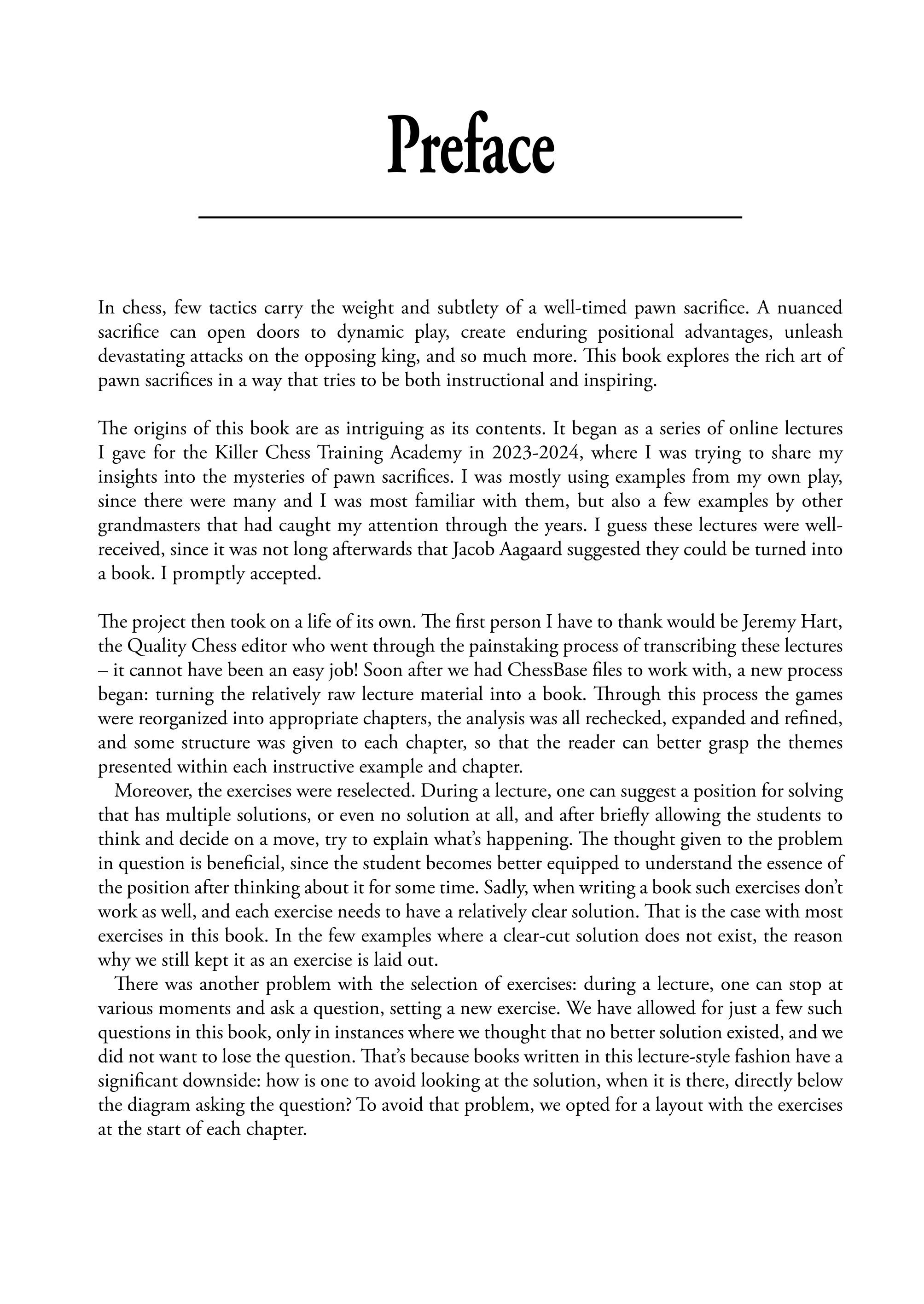 Powerhouse Pawn Sacrifices contains everything you need to master this crucial area of chess. In addition to covering dynamic and long-term sacrifices, Grandmaster Ivan Cheparinov also discusses pawn sacrifices arising in specific opening variations, connecting the different phases of the game, while sharing valuable insights that will be transferable to other scenarios.