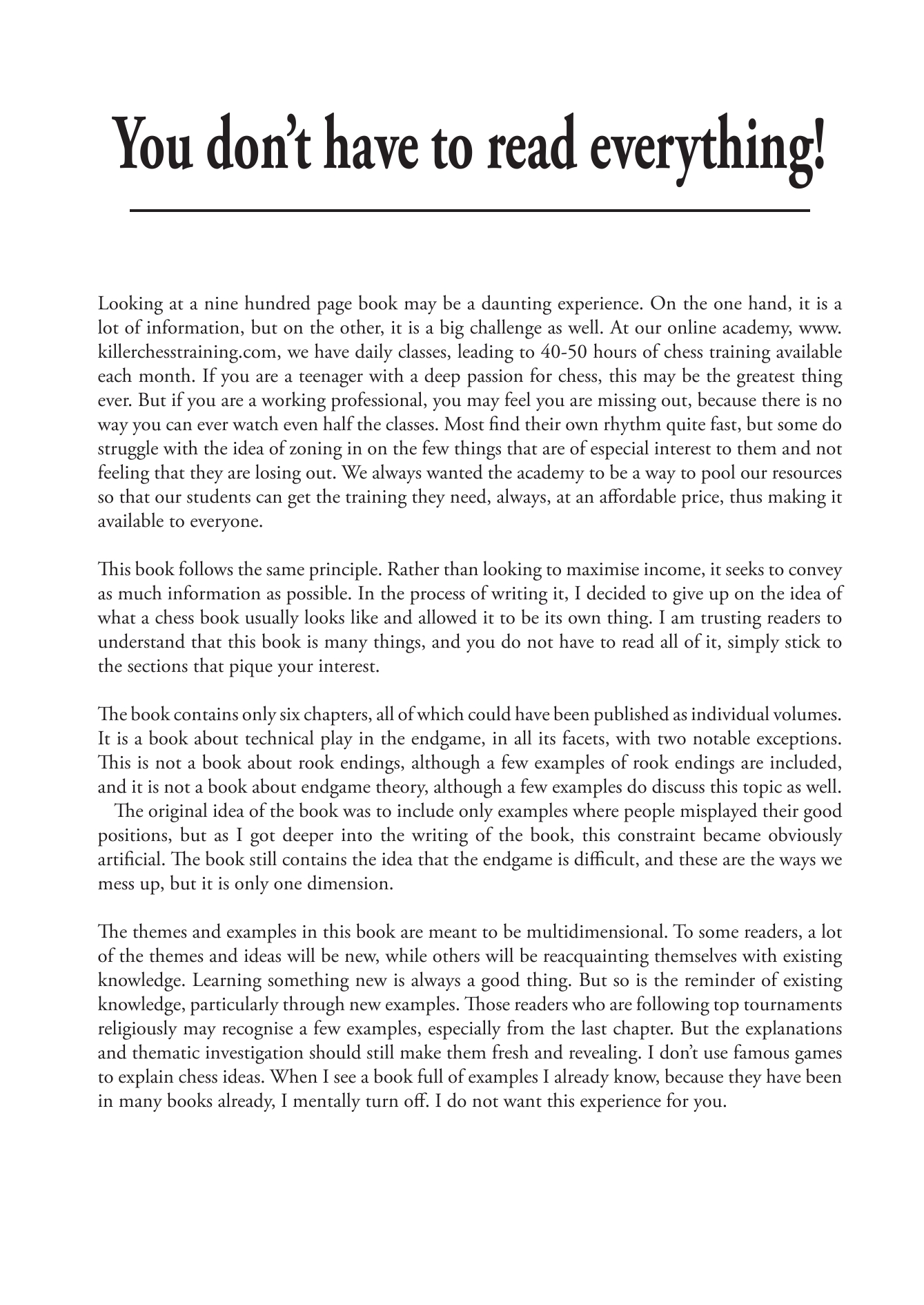 In a survey of the most hated clichés in chess, the winner was: and the rest is a matter of technique. This book deals with one of the few things chessplayers hate even more – losing a winning position. If you have never lost a winning position, this is the chance for you to see how it is done. If you are not new to the misery of spoiling hours of hard work in a few minutes, A Matter of Endgame Technique will offer you the second-best happiness – the misfortune of others. But more importantly, underlying patterns of how and why we misplay winning endgames are carefully investigated and explained, as well as how to avoid these mistakes in future.