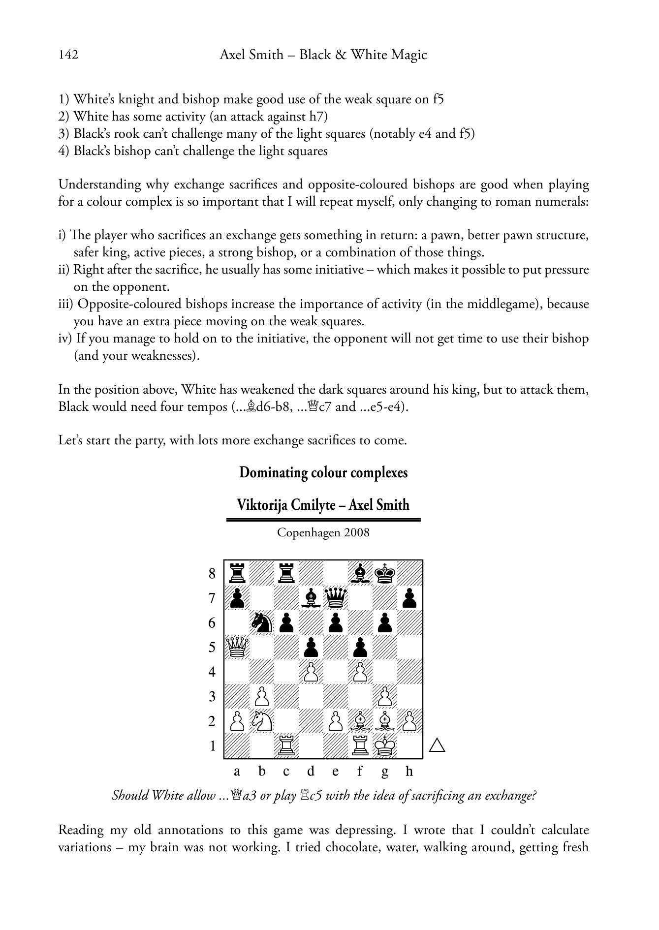 During his long journey as a chess player and coach, GM Axel Smith came to the realization that understanding colour-complex strategies is one of the key differences between strong and weak players. After many years of delivering lectures and training material to his students, Smith produced a Chessable course on the topic, which has been extensively edited and reorganized by Quality Chess to produce this book.