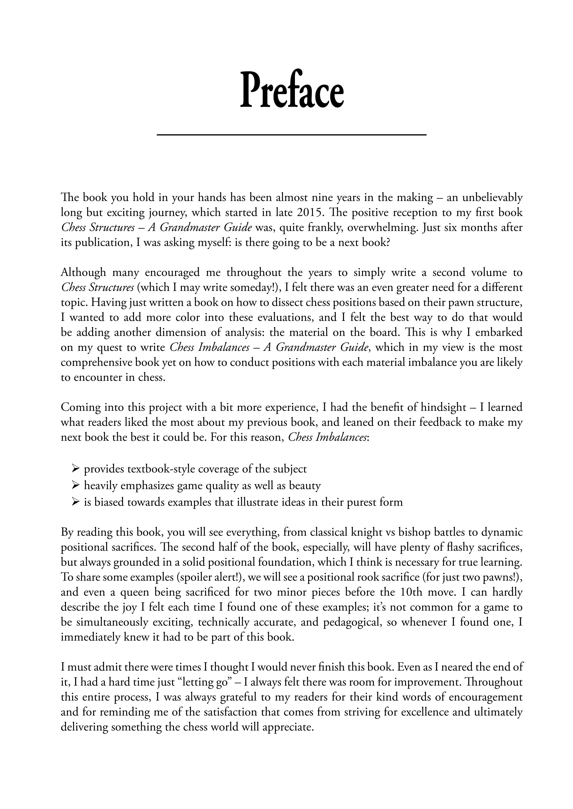 With meticulously chosen examples, insightful commentary and exercises to test your newfound understanding of all types of material imbalance, Chess Imbalances is an essential tool for chess improvement.