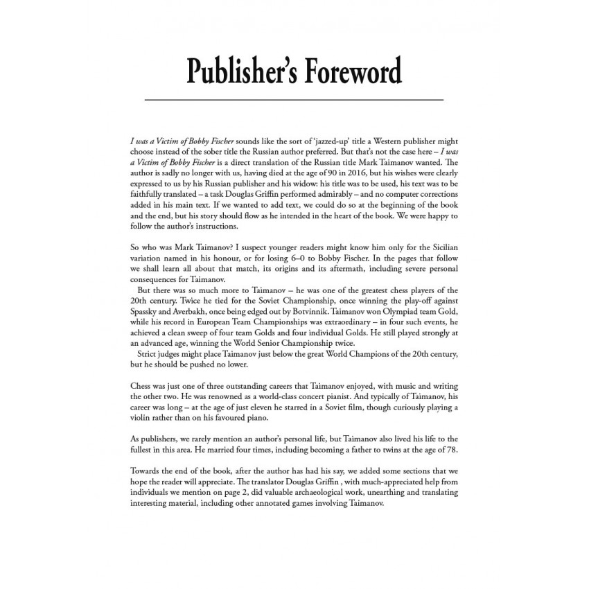 With fascinating additional archive material and analytical contributions from some of the brightest young stars of the American chess scene today, I was a Victim of Bobby Fischer is the ultimate insight into one of the most famous matches in chess history.