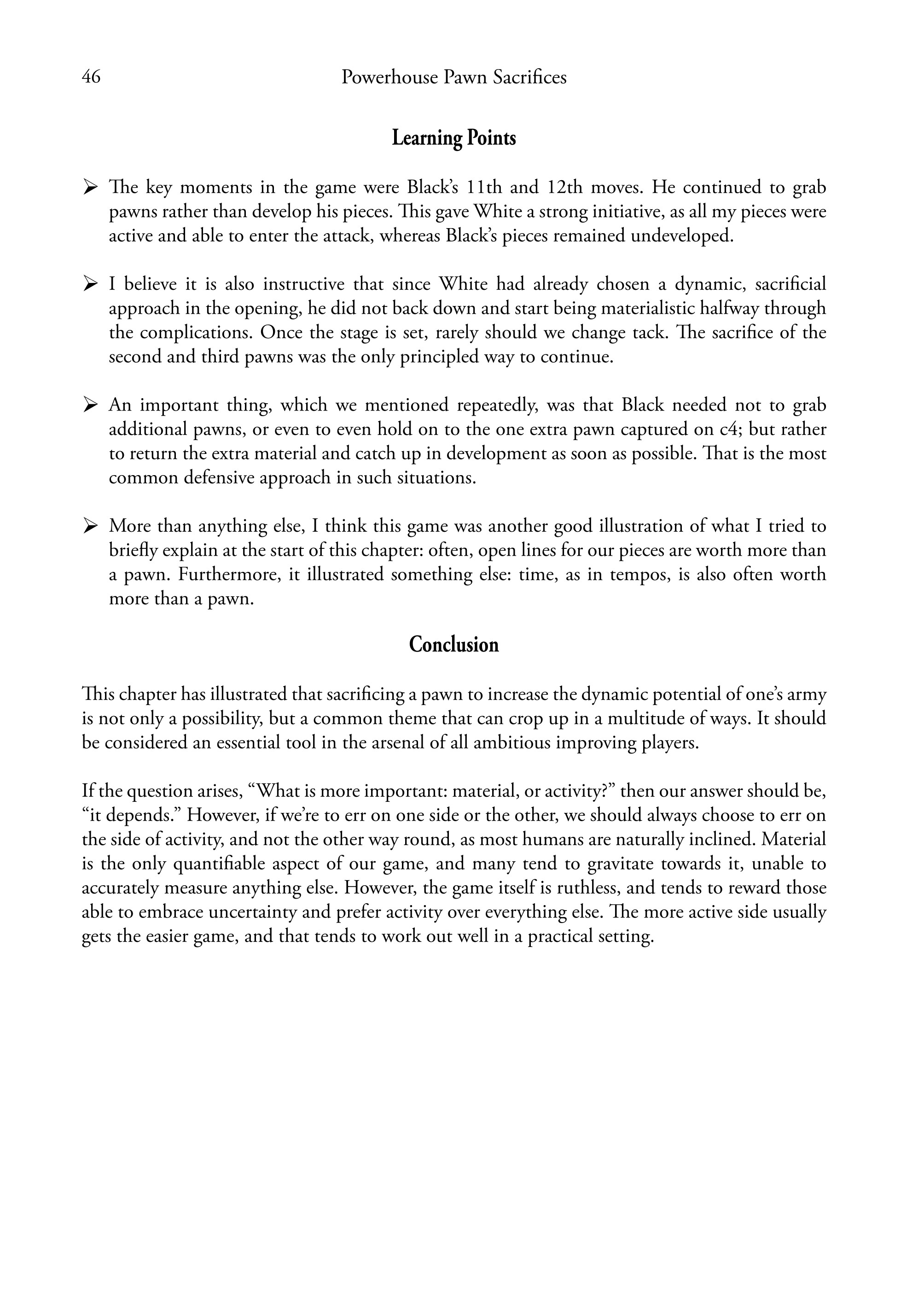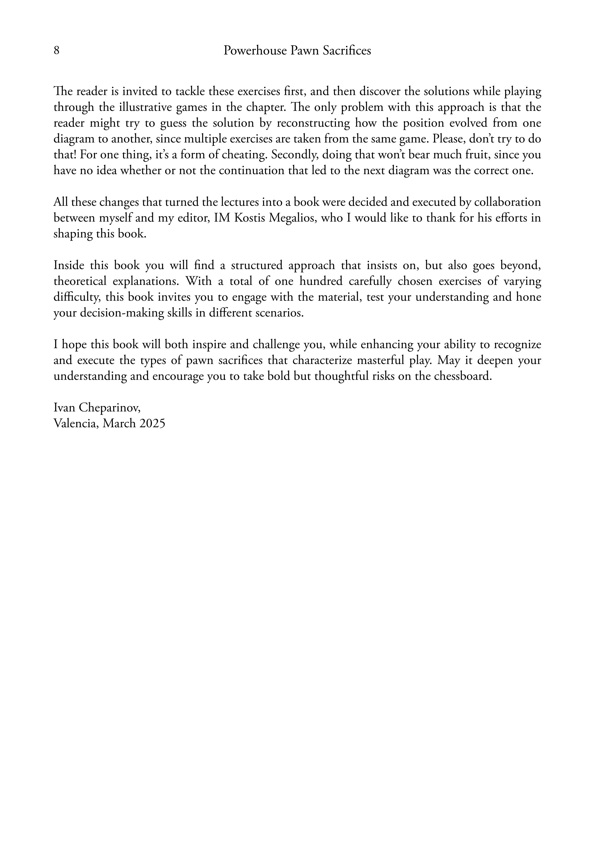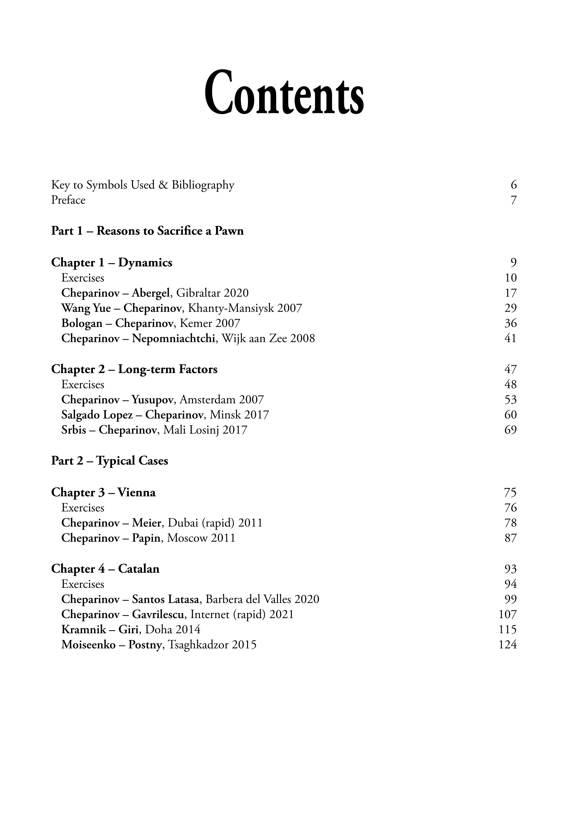Powerhouse Pawn Sacrifices contains everything you need to master this crucial area of chess. In addition to covering dynamic and long-term sacrifices, Grandmaster Ivan Cheparinov also discusses pawn sacrifices arising in specific opening variations, connecting the different phases of the game, while sharing valuable insights that will be transferable to other scenarios.