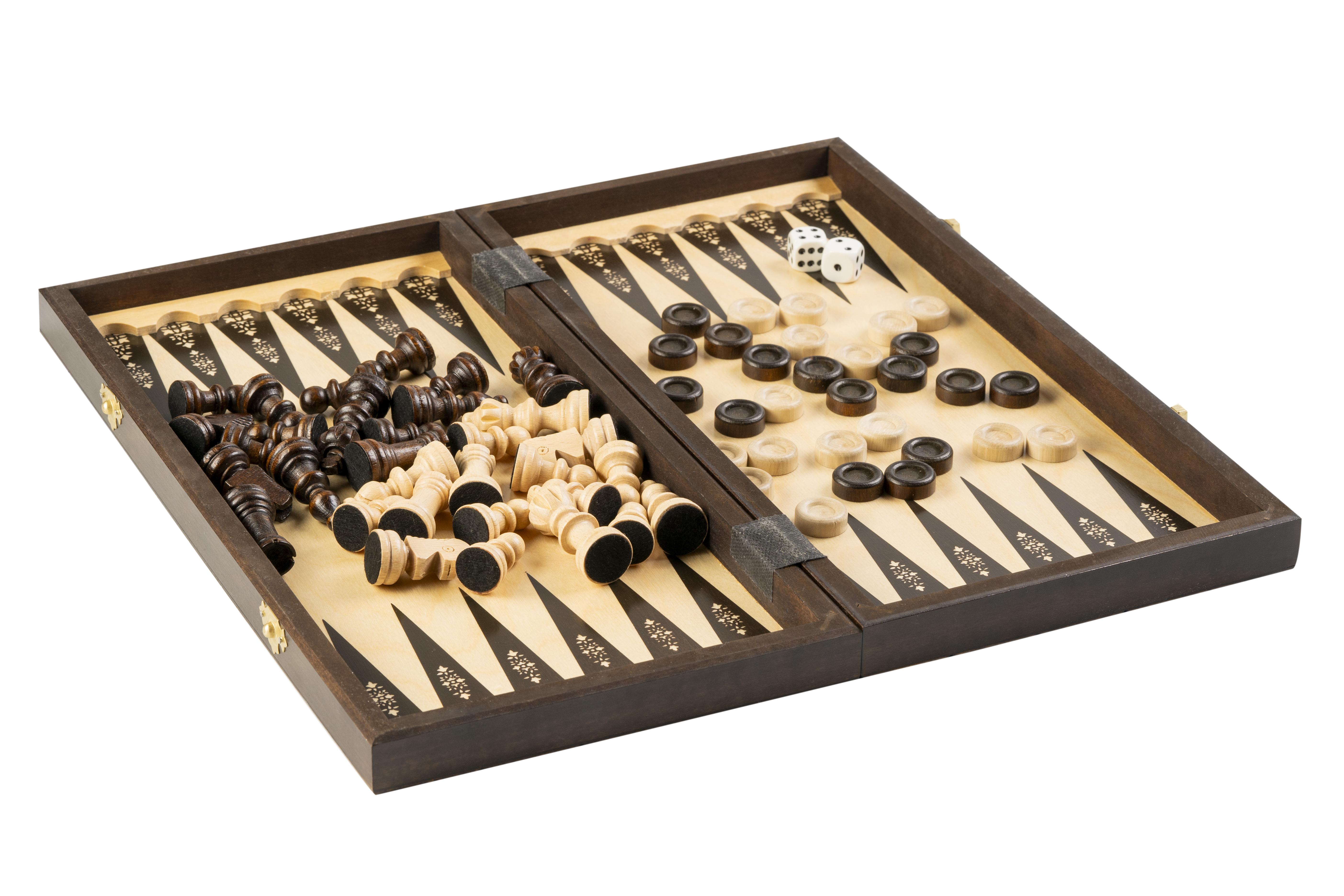 Otwierając kuferek, odkryjesz trzecią planszę, na której możesz rozegrać emocjonujące partie w backgammona. Ta dynamiczna gra strategiczna dodaje zestawowi różnorodności i daje możliwość przetestowania różnych taktyk.